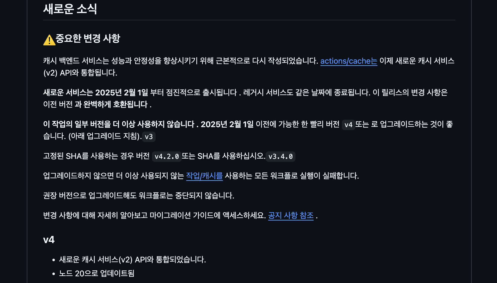 버전 v4로 올려야 한다고 합니다. actions/cache@v4 로 코드 변경해주시면 됩니다!