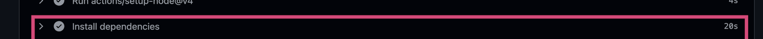 그리고, 의존성에 변함이 없기 때문에 Install dependencies 는 실행시키지 않아서 0s 소요인 것 을 볼 수 있다.